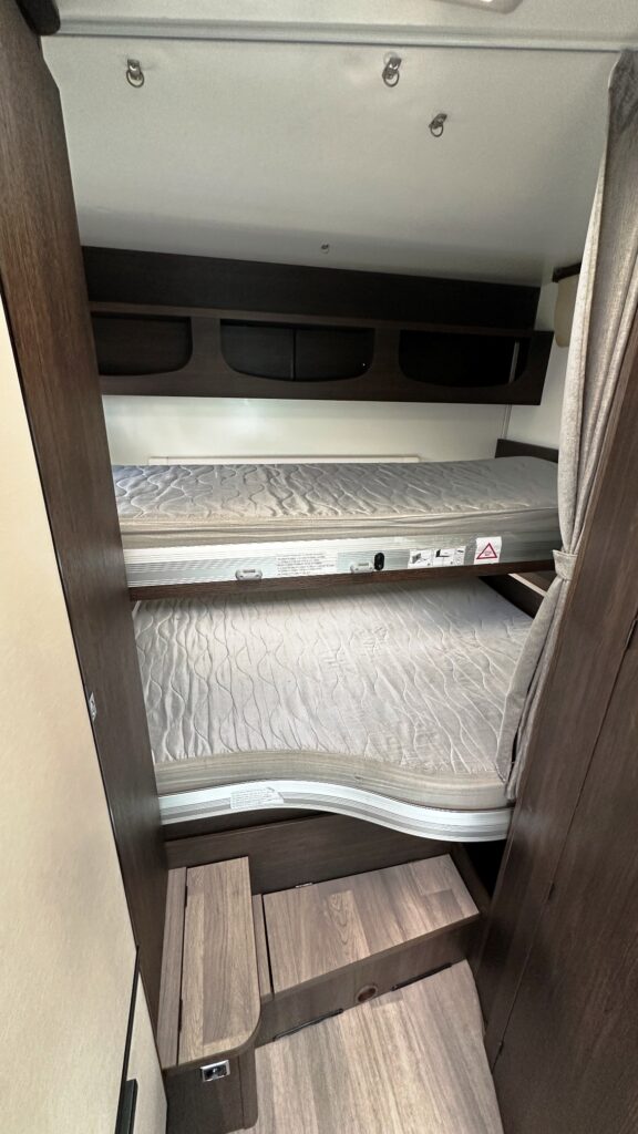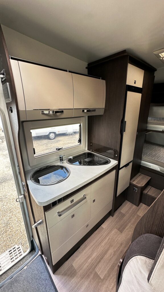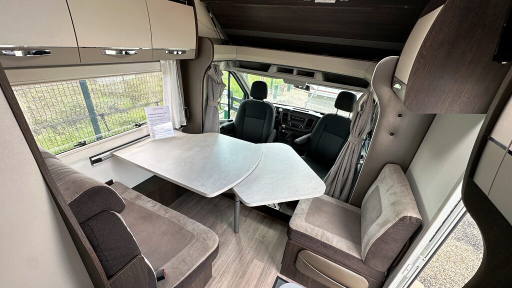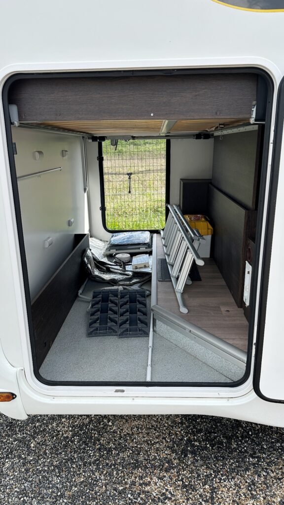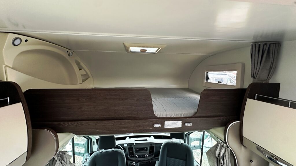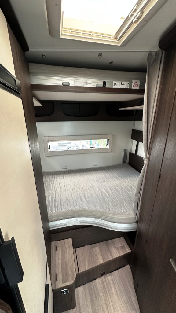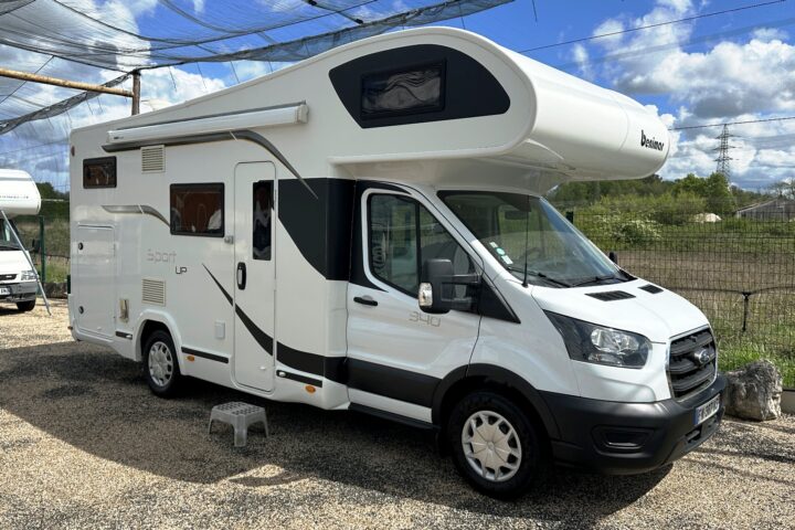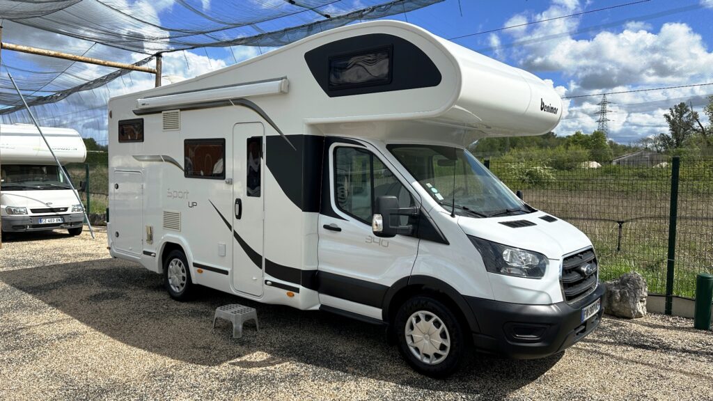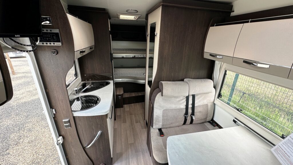 Capucine Benimar, 5 couchages, lits superposé modulable sur soute garage (plusieurs vélos adultes), salle de bain avec douche indépendante, cuisine droite spacieuse et toute équipée, maxi salon avant avec sièges + banquette latérale, pour finir une immense capucine en cabine avec lit en 160 cm.