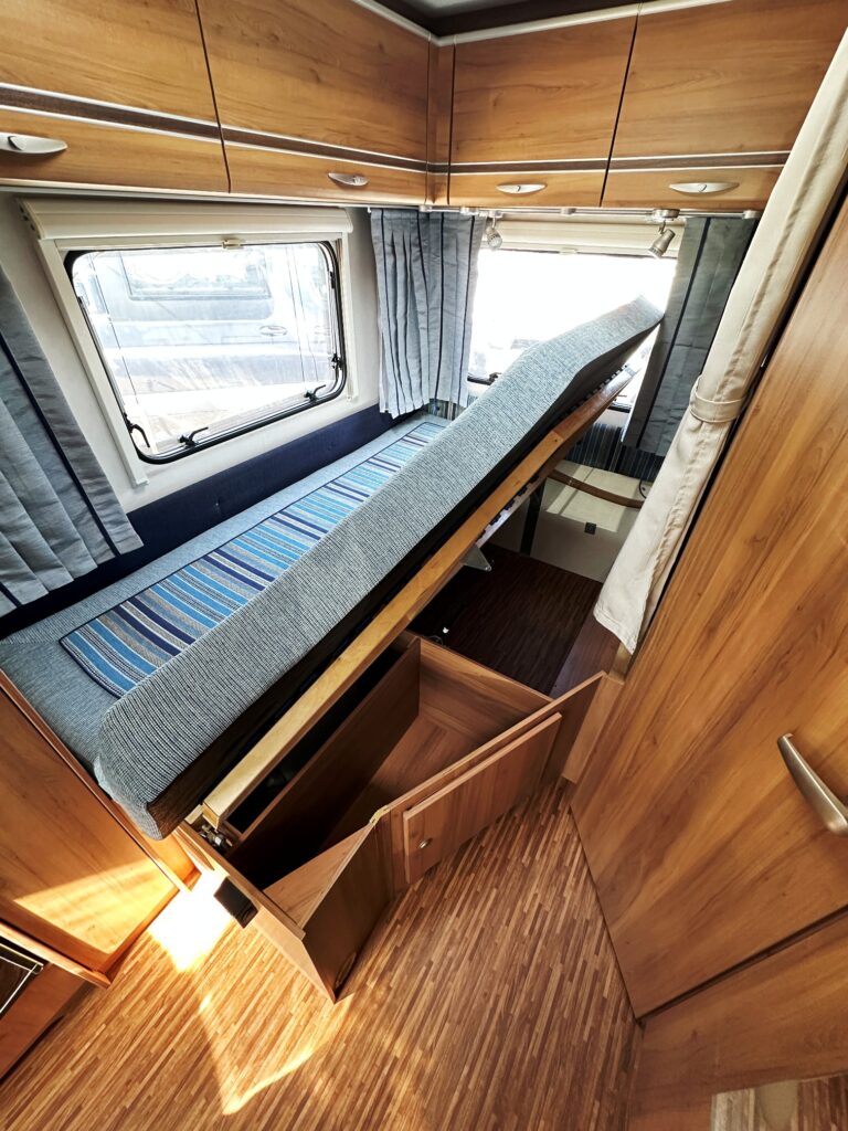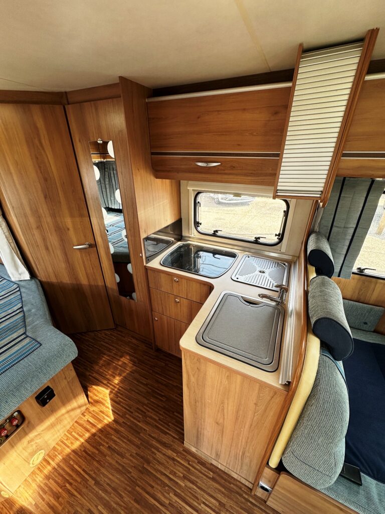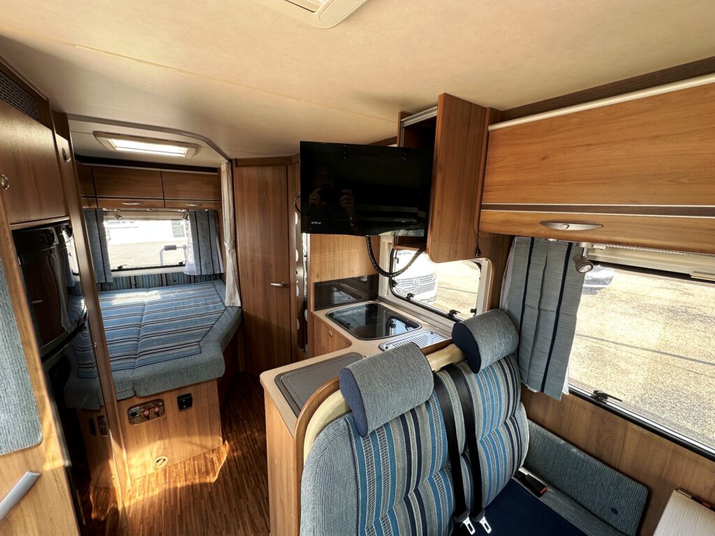 Profilé Burstner fabrication allemande recherchée. 3 couchages, dont lit permanent à la française et salon convertible en un couchage d’appoint avec sièges pivotants. Vaste salle de bain transformable en douche, cuisine en L spacieuse équipée. Équipé de suspensions pneumatiques pour une tenue de route et un confort optimaux.