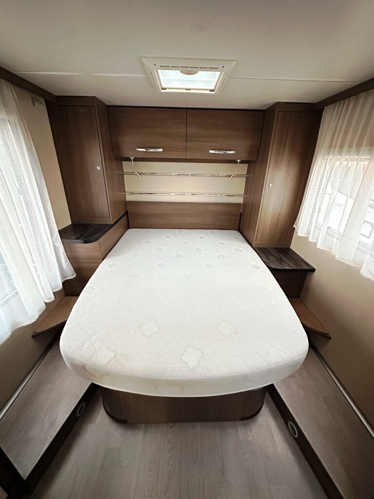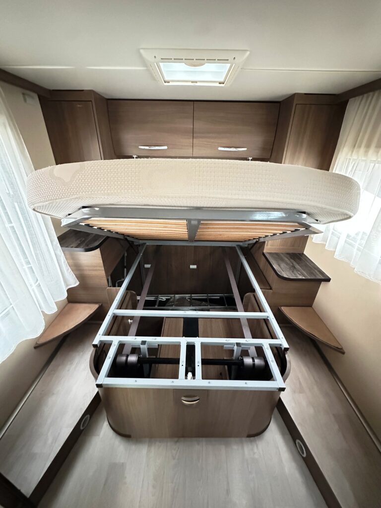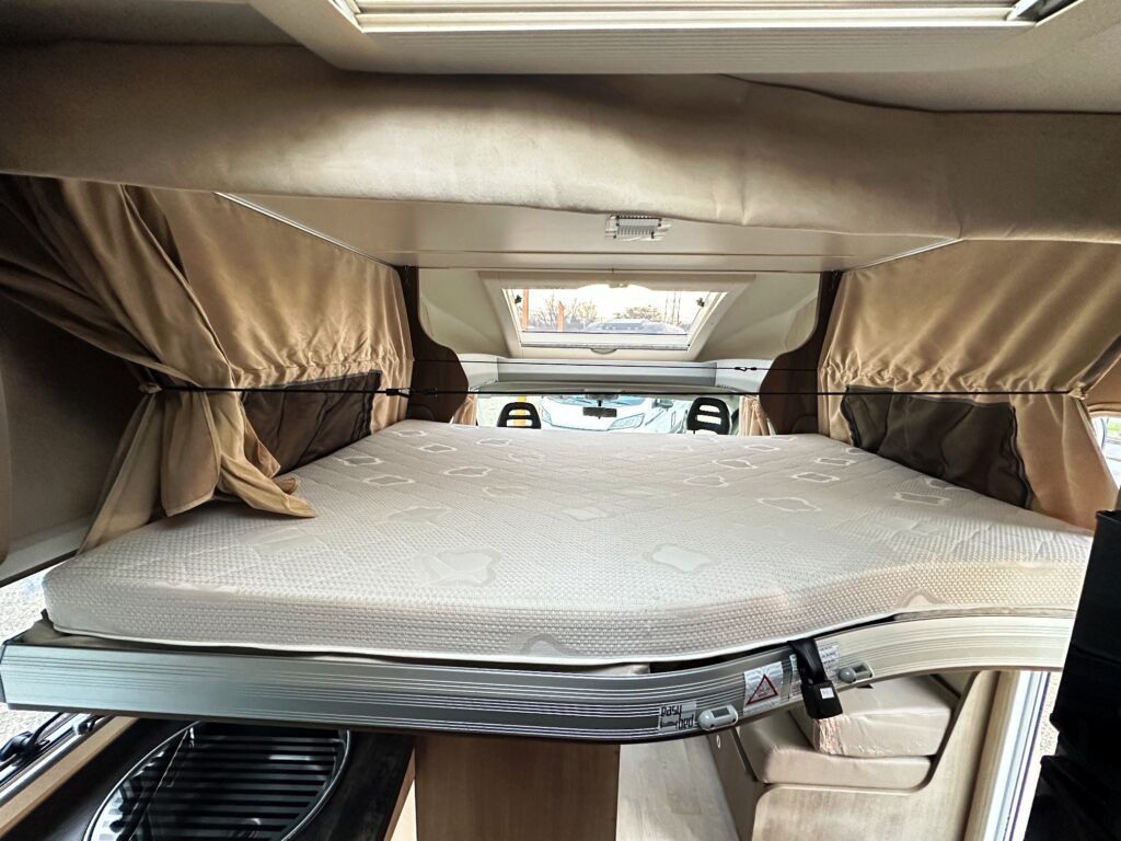 • Espace Nuit : Chambre arrière avec lit central réglable en hauteur, offrant une séparation pour plus d’intimité.
