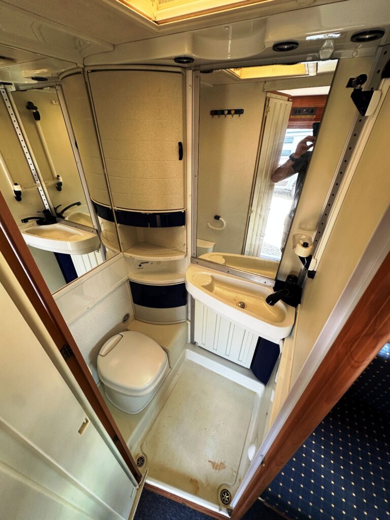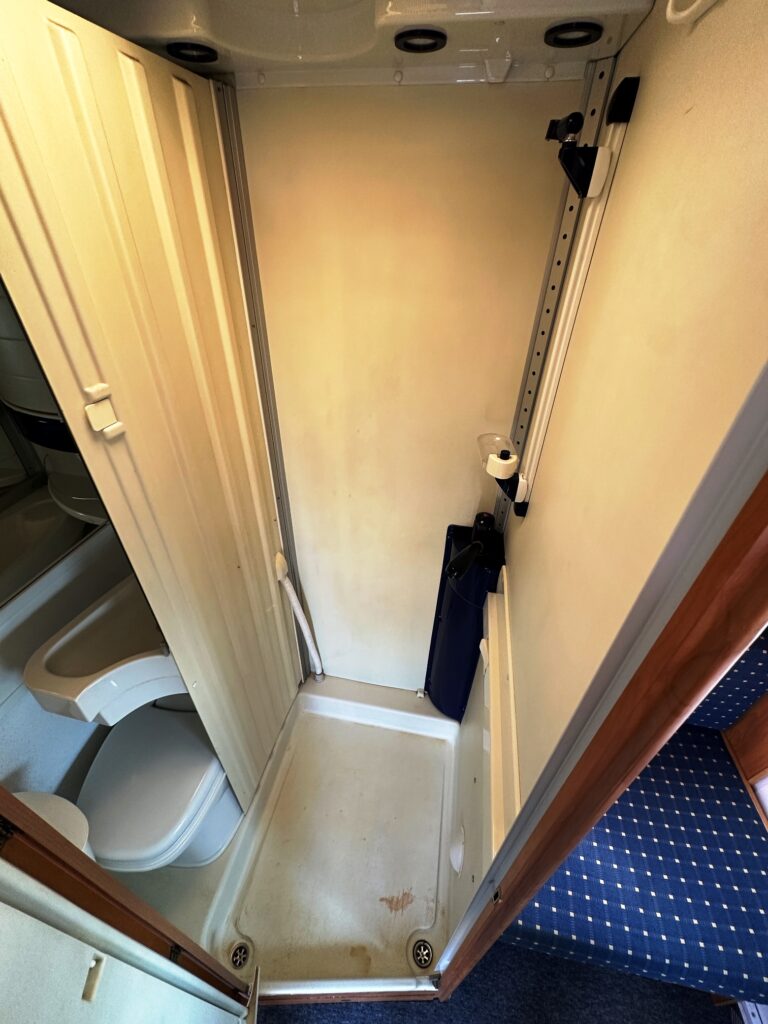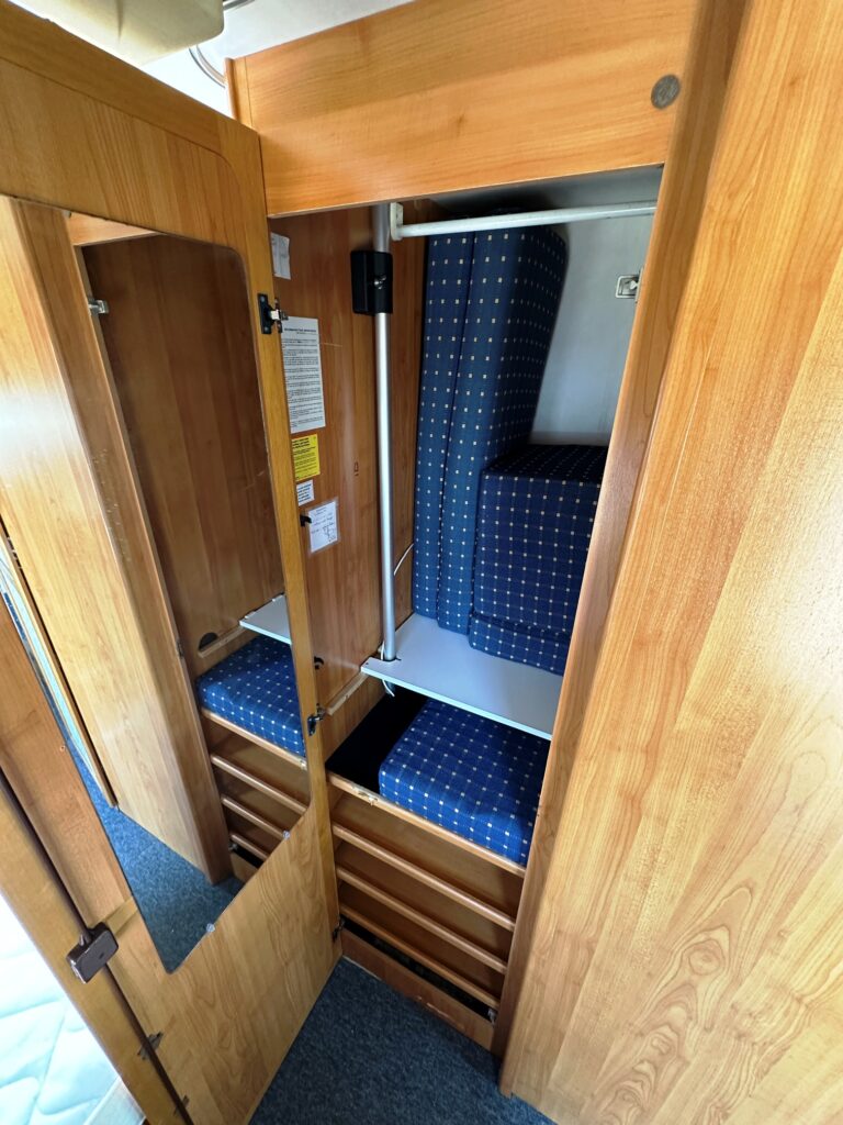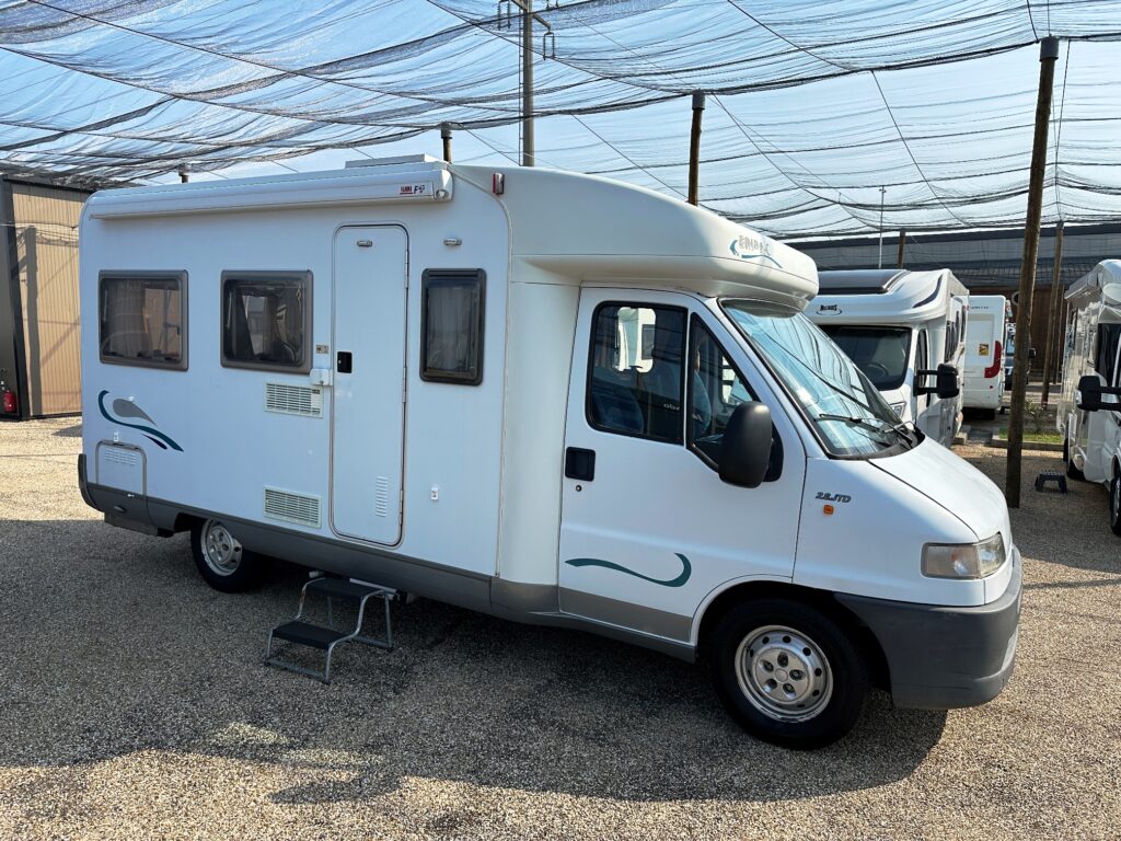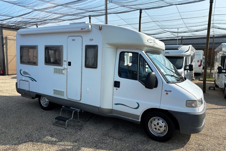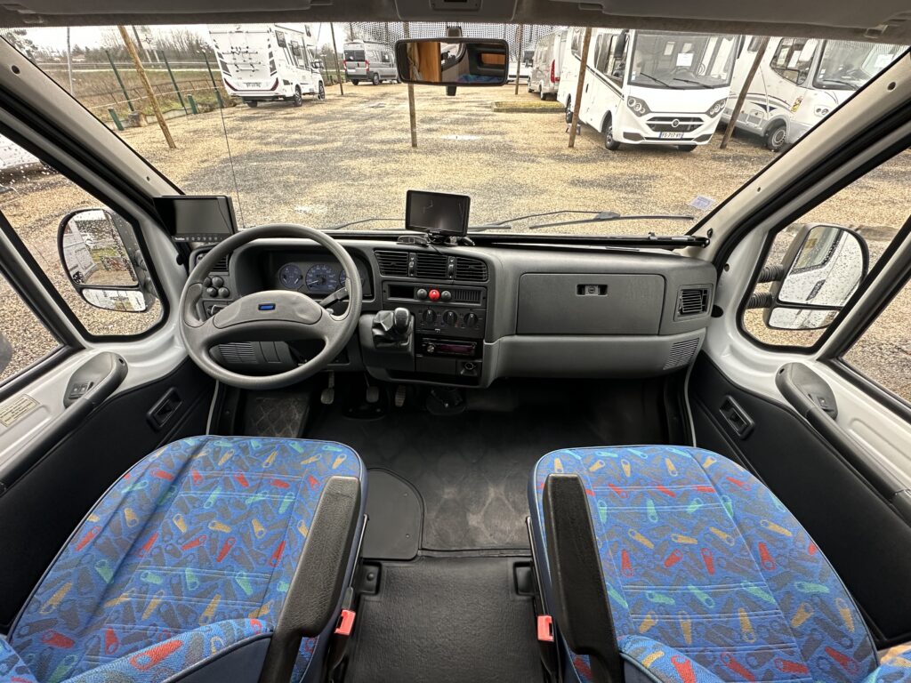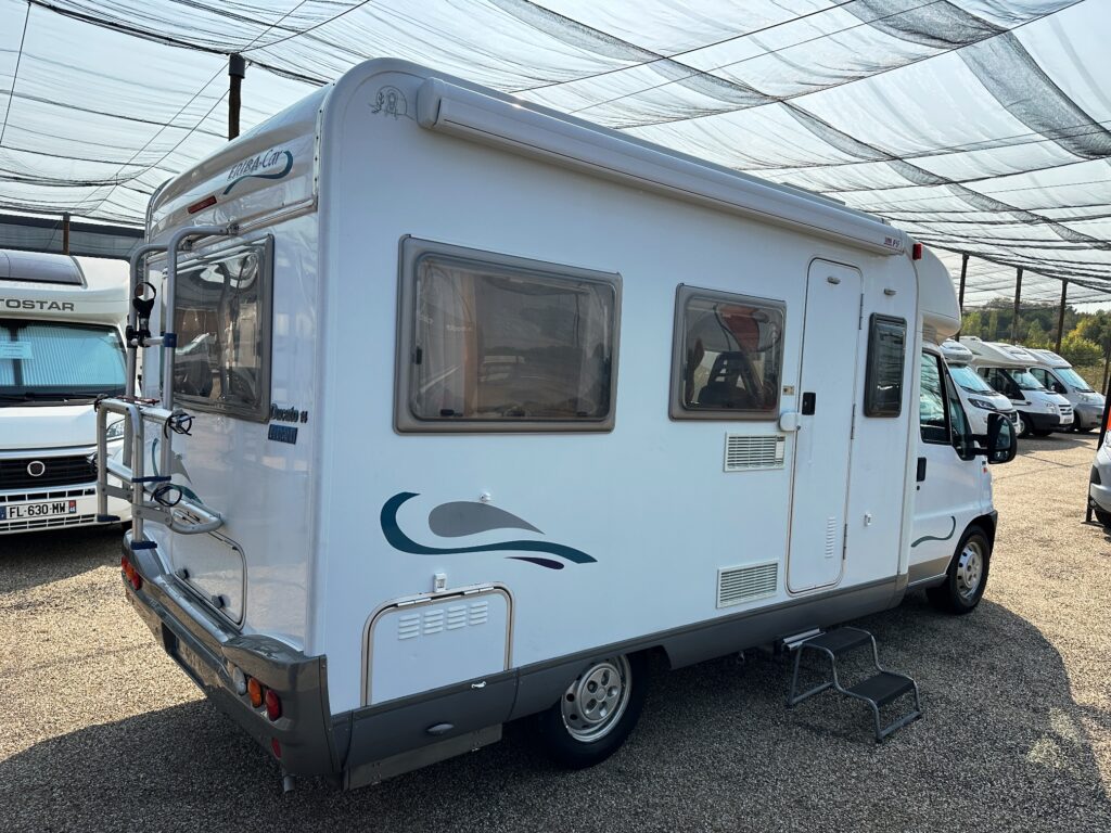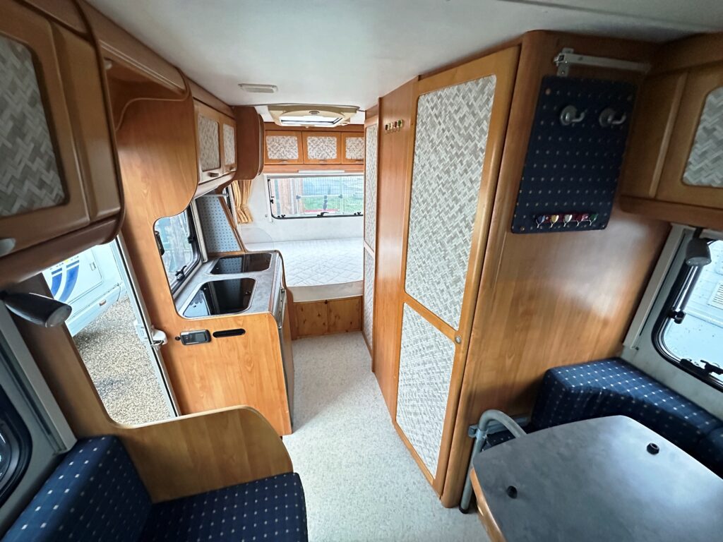 Profilé Eriba, 3 couchages, lit transversal, salle de bain « vario » convertible en douche, cuisine spacieuse et toute équipée, salon avant avec sièges pivotant et table centrale convertible en un couchage d’appoint.