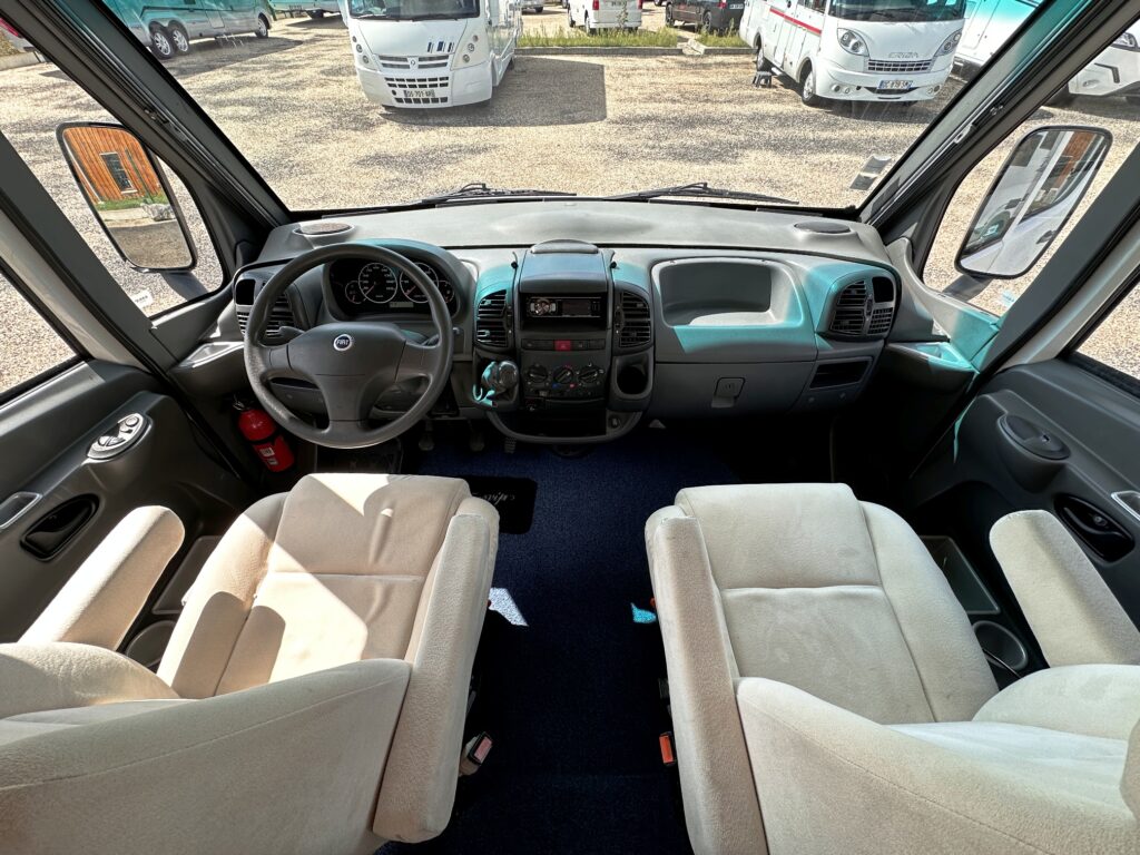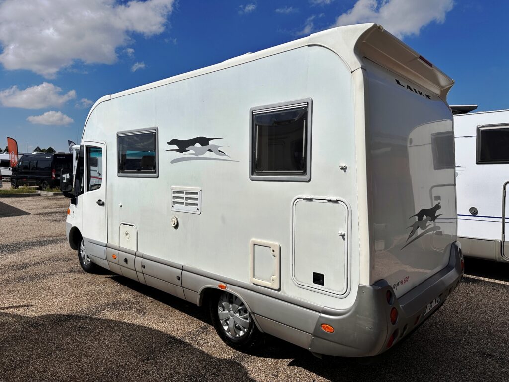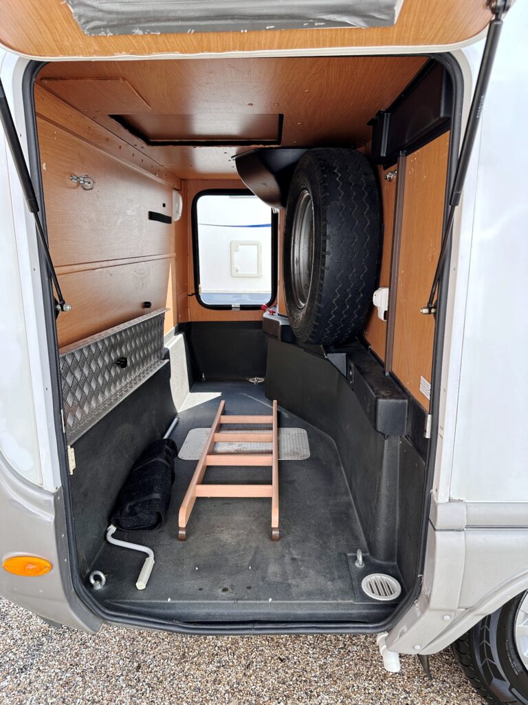 Intégral Laika, lit pavillon, vaste soute garage (plusieurs vélos adultes), 4 couchages, salle de bain avec grande douche entièrement séparée, cuisine spacieuse et toute équipée, vaste salon avant avec sièges pivotant et table centrale convertible en un couchage d’appoint pour deux adultes + un lit pavillon en cabine pour deux personnes
