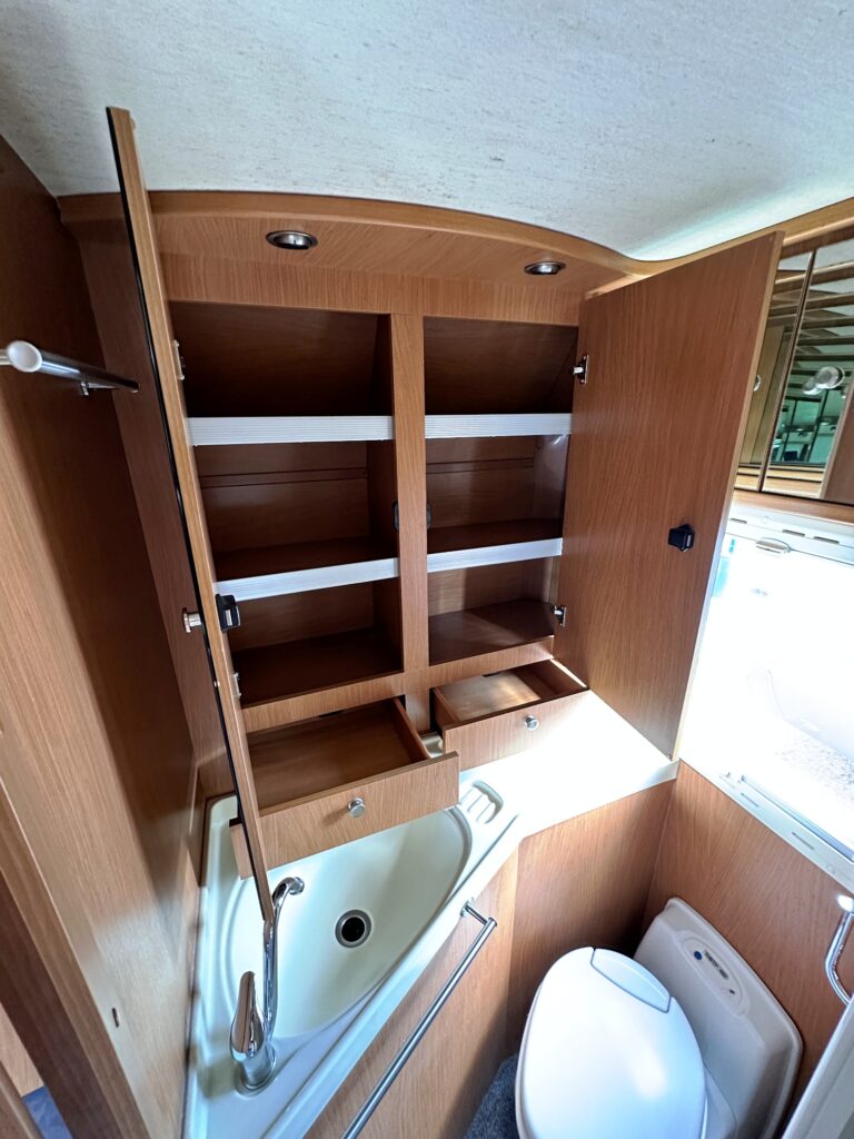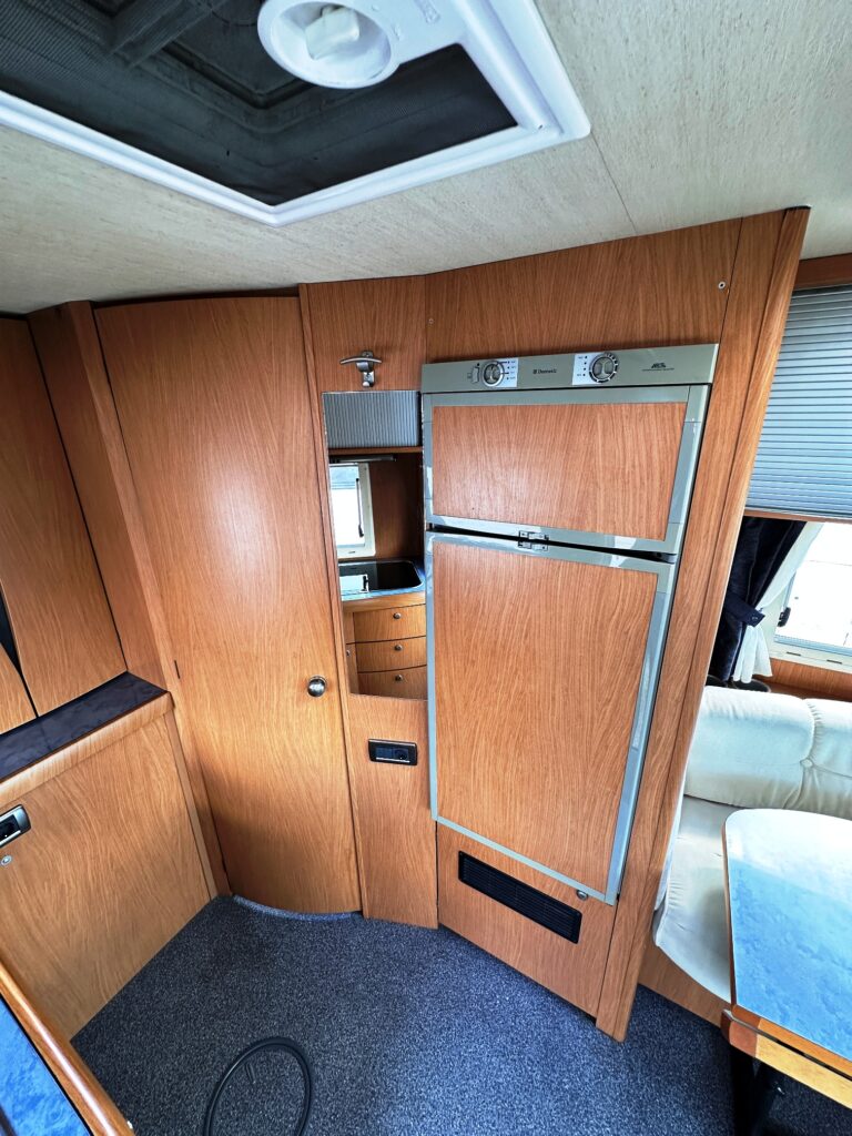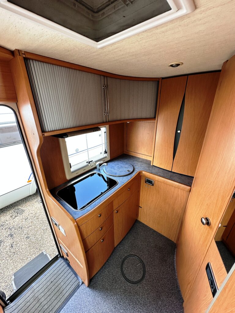 Fabrication haut de gamme très recherchée, habitabilité record malgré une longueur super contenue (5.99 M), motorisation performante et fiable, châssis Alko avec double plancher pour un maximum de rangements et une isolation parfaite.