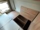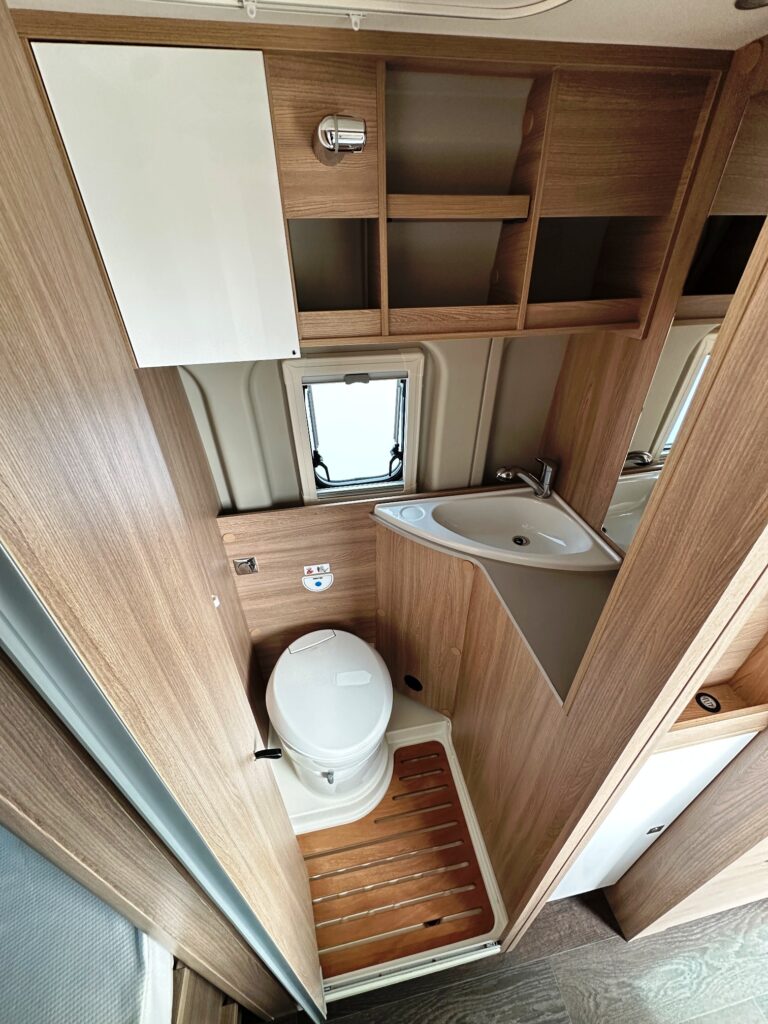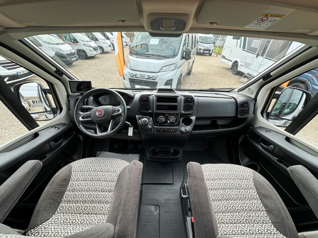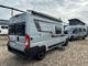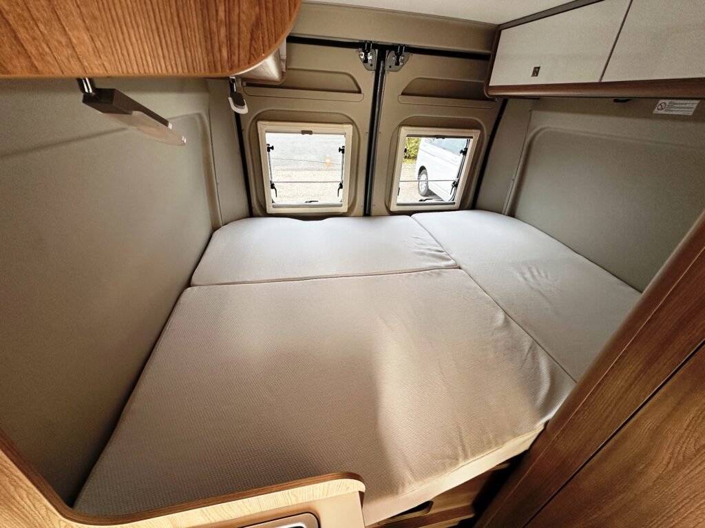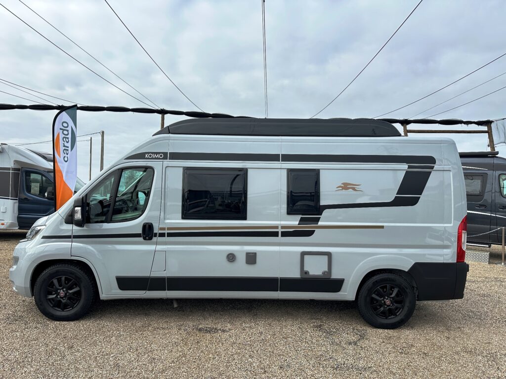 Fourgon Laïka (5.99 M), 4 couchages, lit transversal (possibilité de dégager le couloir), vaste salle de bain avec douche intégrée, salon avant avec sièges pivotant, table centrale, cuisine droite équipée de nombreux rangements et d’un frigo par compression, toit relevable et lit pavillon supplémentaire pour deux adultes.