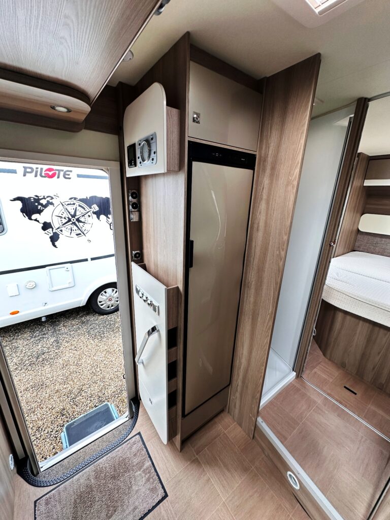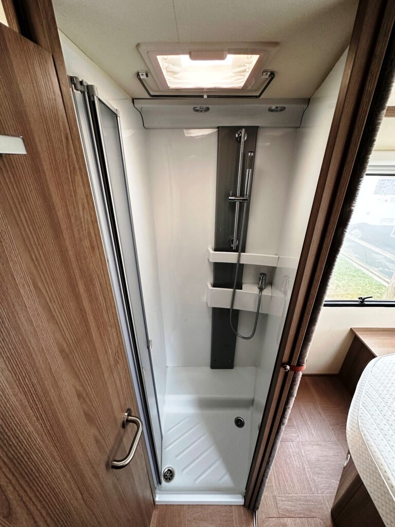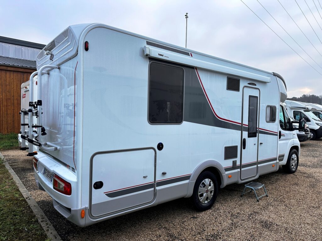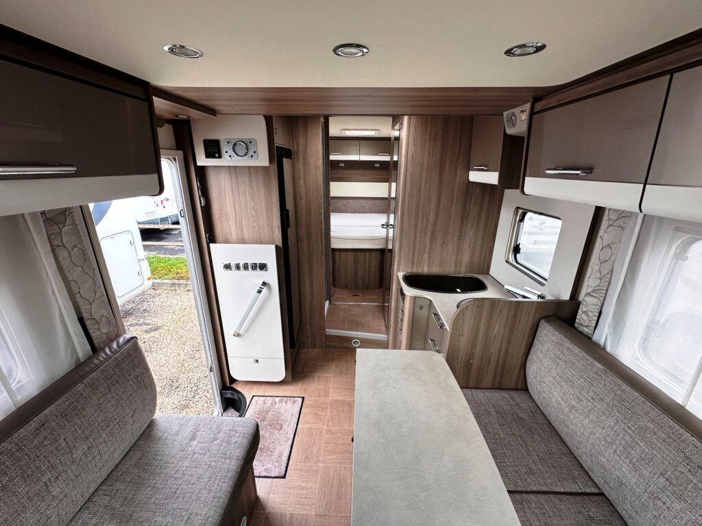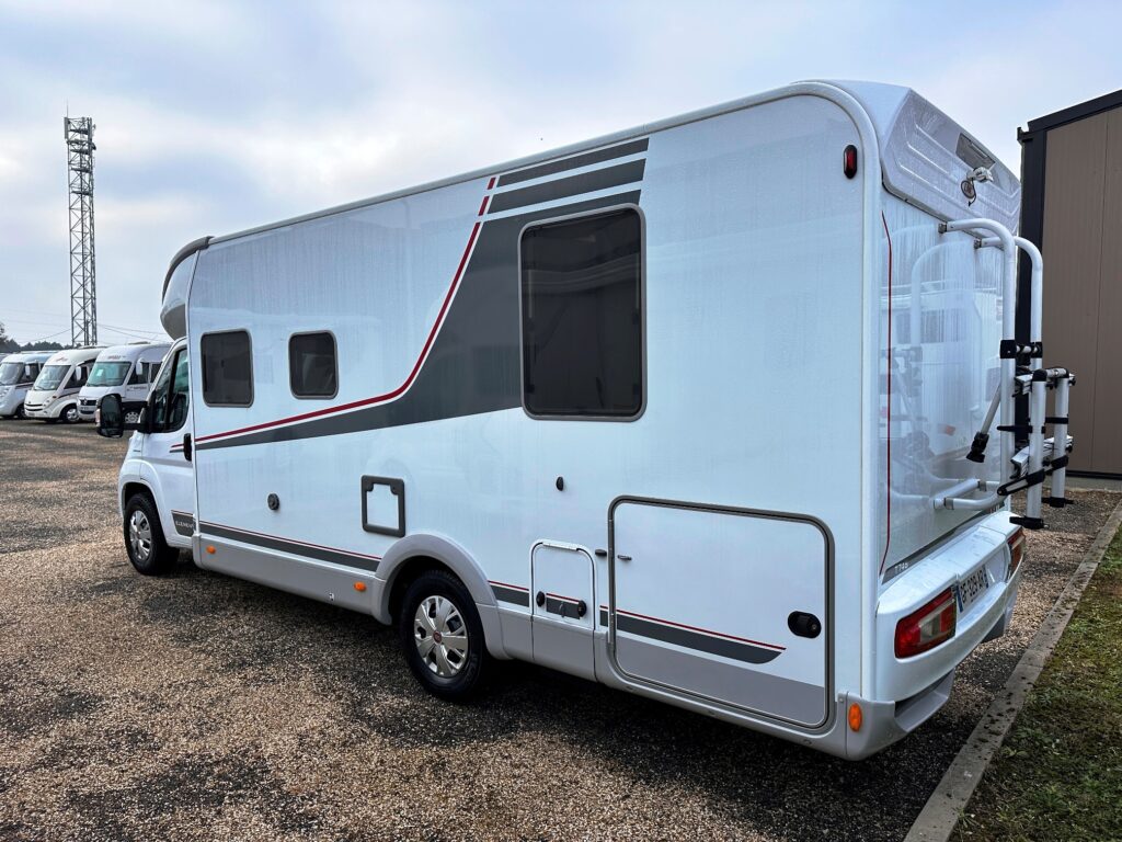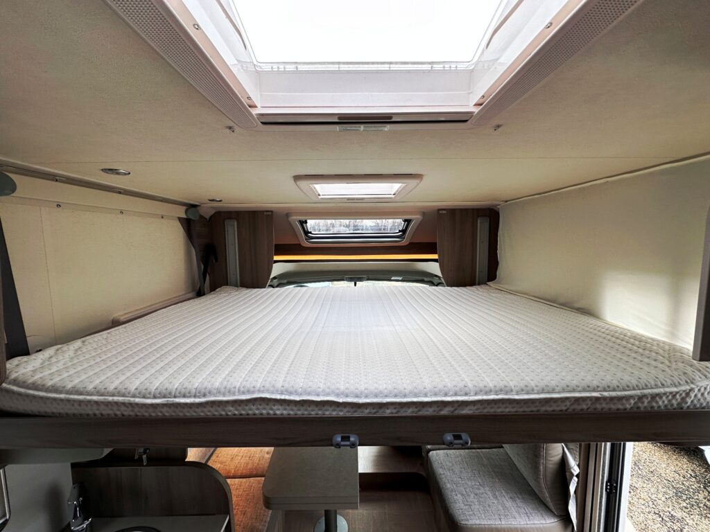 Profilé LMC, 4 couchages, lit central sur soute garage (plusieurs vélos), salle de bain avec grande douche entièrement séparée, double fermeture chambre arrière, cuisine spacieuse et toute équipée, vaste salon avant avec sièges pivotant et table centrale + lit pavillon électrique pour deux adultes.