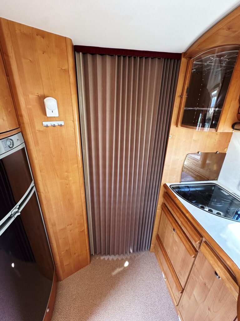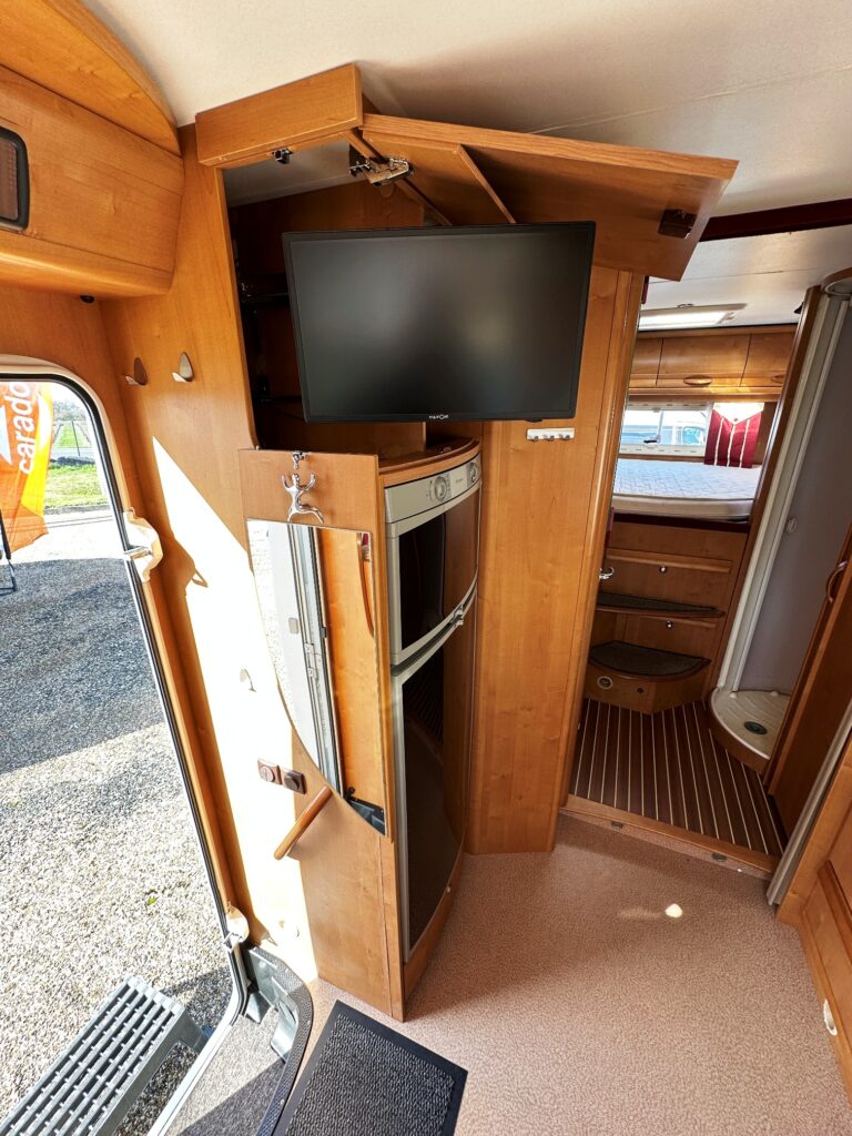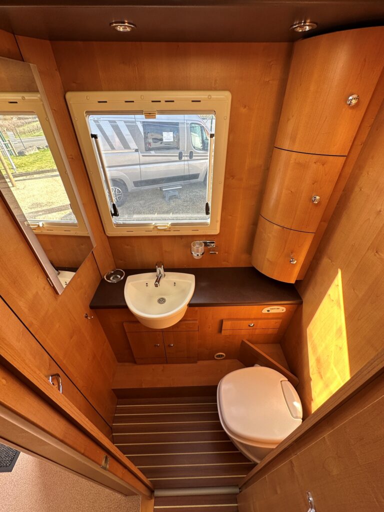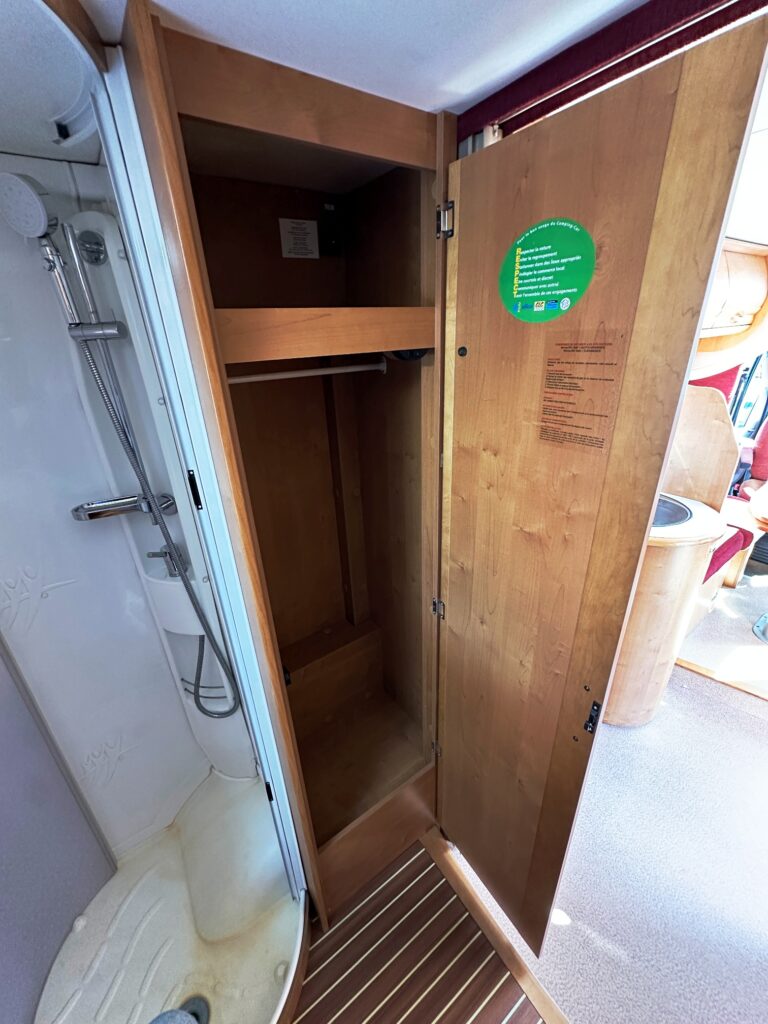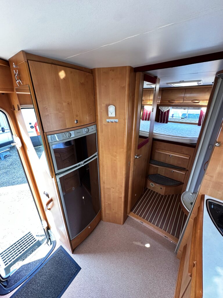 Profilé Rapido, 4 couchages, lit sur immense soute garage (plusieurs vélos adultes), salle de bain avec grande douche entièrement séparée, cuisine spacieuse et toute équipée, vaste salon avant avec sièges pivotant et table centrale convertible en un couchage double d’appoint.